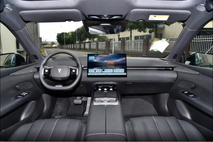内饰部分:整个车内的设计风格与外观一样同样以简约为主,非常符合当下消费者对于新能源车型的要求,科技感十足的内饰才是目前的主流风格。此外,55英寸AR-HUD系统采用分层投影技术,将导航路径、车速、辅助驾驶状态等信息按视觉优先级分三层投射,实测显示在强逆光环境下仍能保持较高的辨识度。15.6英寸向日葵屏的偏转机制经过人体工学优化,主驾模式时向驾驶员侧偏转12度,屏幕表面采用防眩光AG玻璃,在正午阳光直射下仍可保持清晰显示。深度定制的车机系统支持三指飞屏功能,可将导航信息无缝流转至HUD显示。